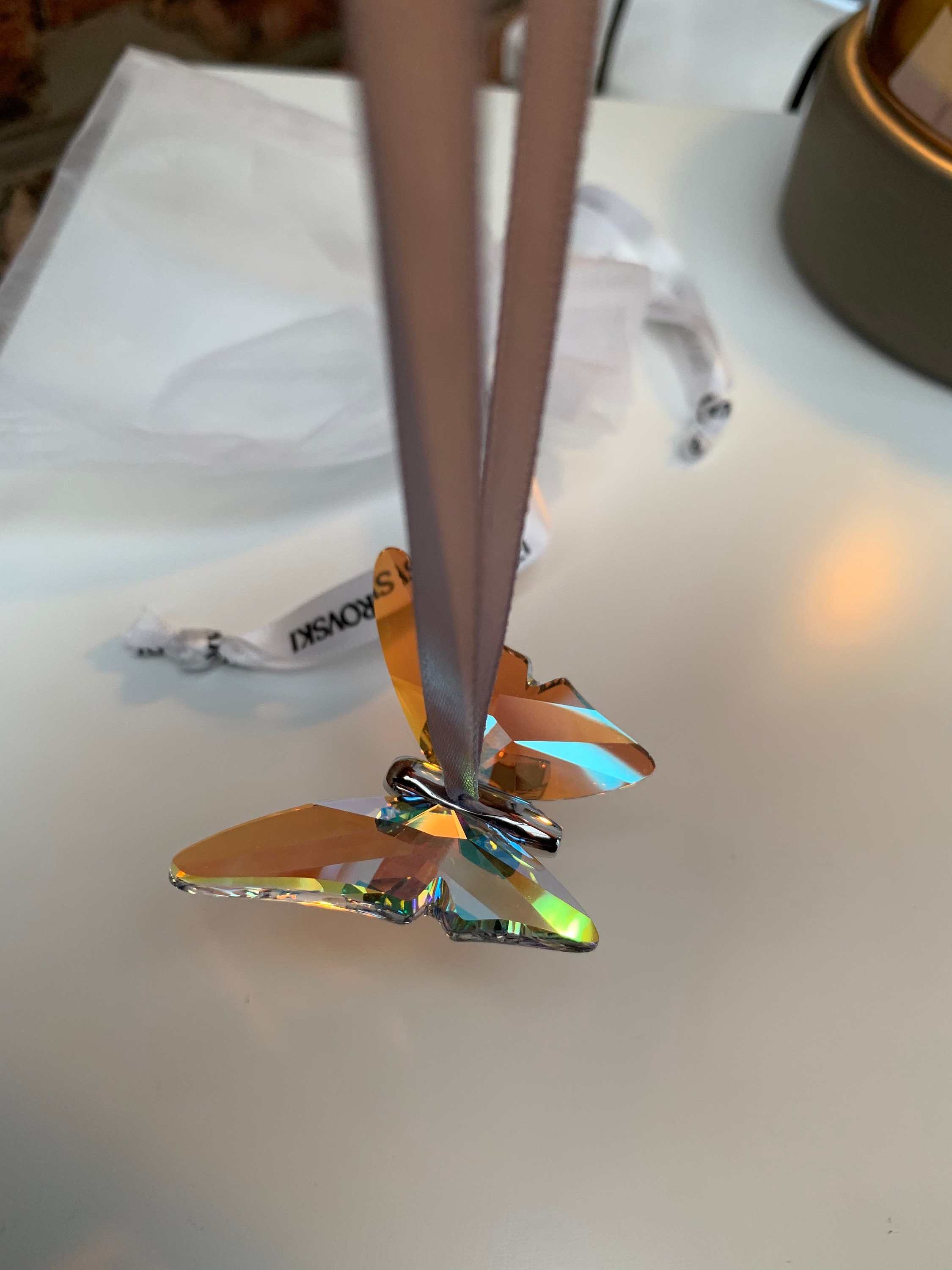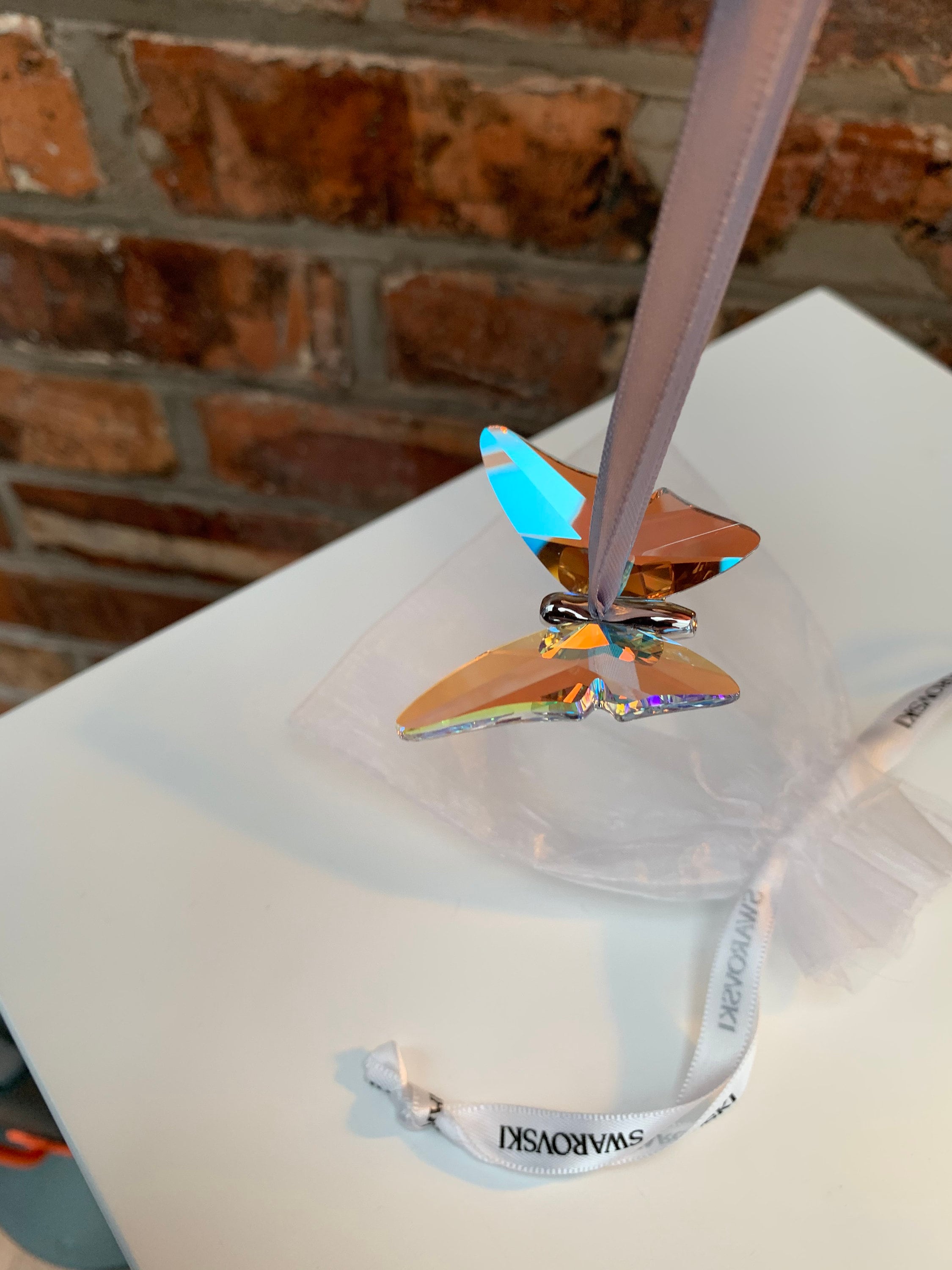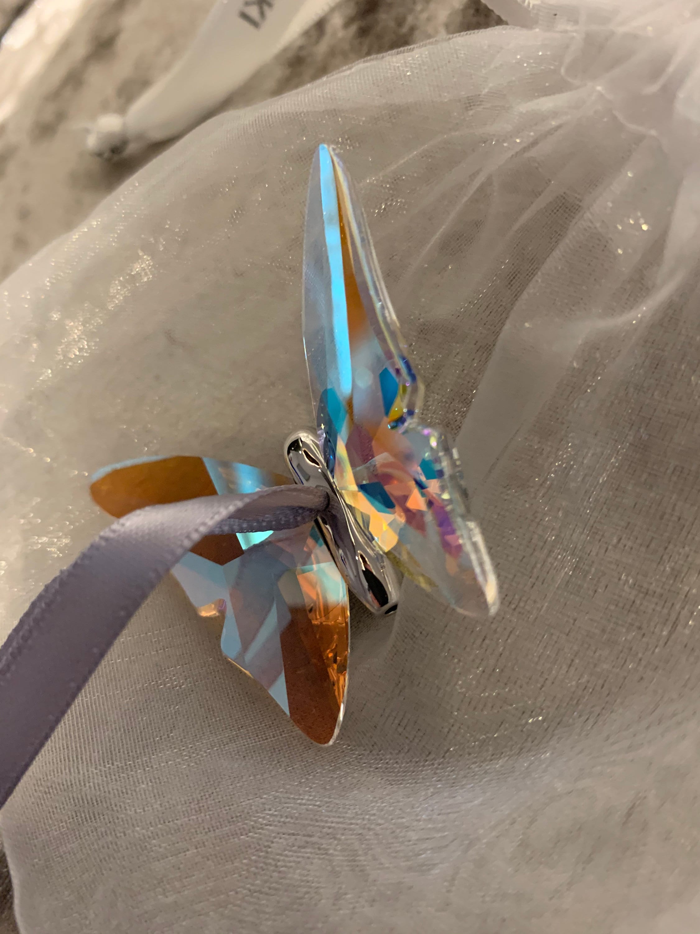 Premium Crystal Butterfly hanging decoration with grey/silver satin ribbon.